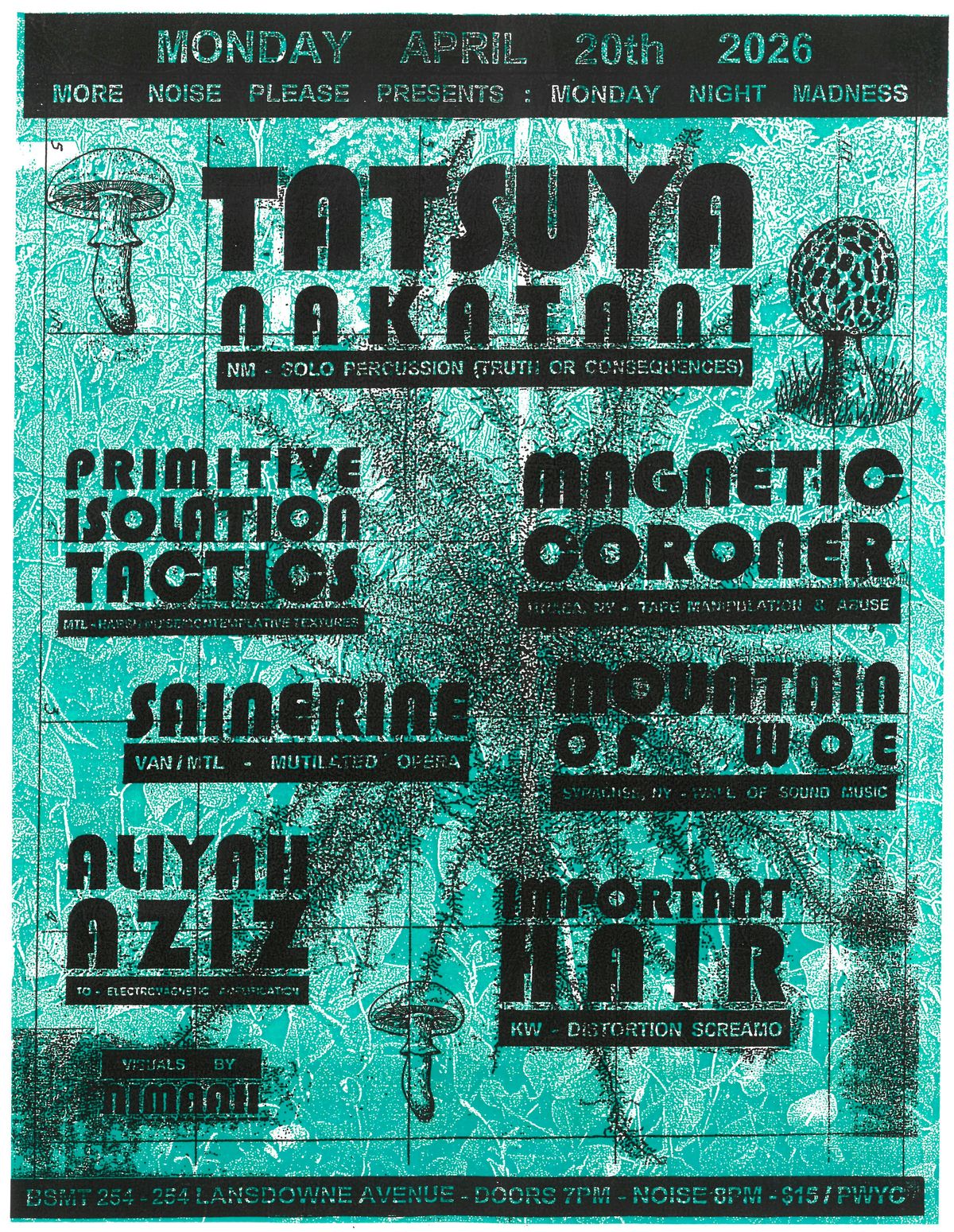 MORE NOISE PLEASE! PRESENTS: MONDAY NIGHT MADNESS ON 4-20!