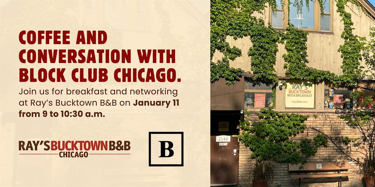 Join us for a relaxed in-person networking event at the cozy and charming Ray's Bucktown Bed and Breakfast. This is your chance to meet fellow advertisers, share ideas, and build connections over some great conversations. We will have coffee and light bites for the morning. This event is made for business owners, entreprenuers, and the like to meet each other and learn more about Block Club opportunites. Don’t miss out on a morning of fun and networking!