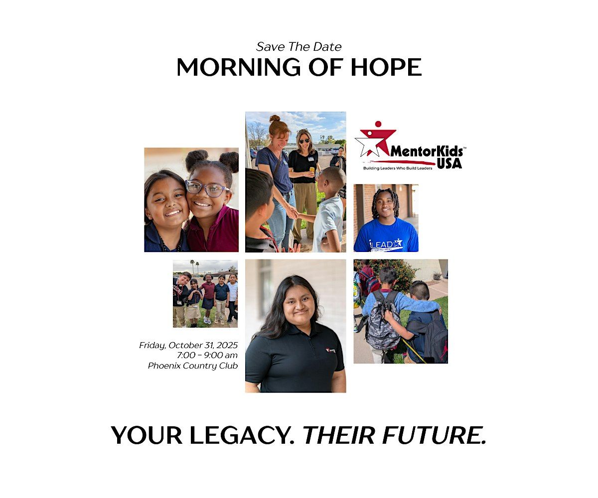 Join us for MentorKids’ Morning of Hope Breakfast—an inspiring gathering where community, compassion, and vision come together. With the theme Your Legacy. Their Future., this uplifting morning will highlight powerful stories of transformation and the lasting impact your support creates for the next generation. Over breakfast, you’ll see how investing in today’s youth helps build tomorrow’s leaders—and discover how you can be part of shaping a brighter future filled with hope.