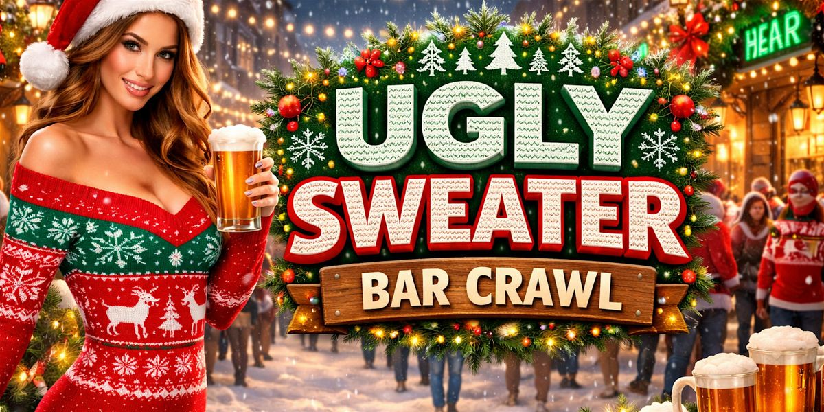Morristown is one of the best bar cities in America we want to celebrate international ugly sweater day with you. So join the party December 12th, 2026 we cannot wait to crawl with you and all your amazing friends in your cozy sweaters. During the holidays, the only thing to do is usually buy gifts and hang out in your hometown but now Pubcrawls.com is bringing you a new outlet.