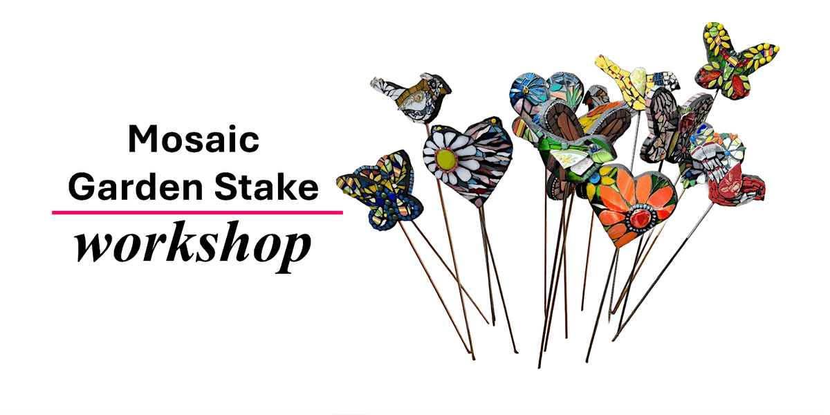 Make a beautiful and unique mosaic garden stake suitable for the garden or for a potted plant. You will have a choice of creating a heart or a bird.