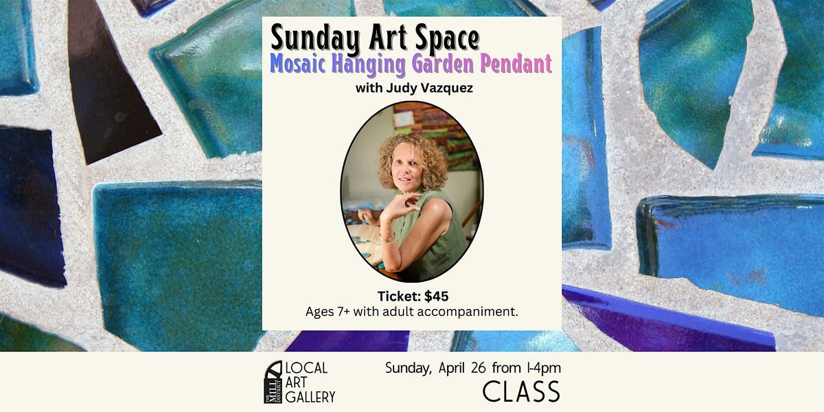 Join Judy Vazquez at The Local Art Gallery on Sunday, April 26 from 1-4pm to make a Mosaic Hanging Garden Pendant.