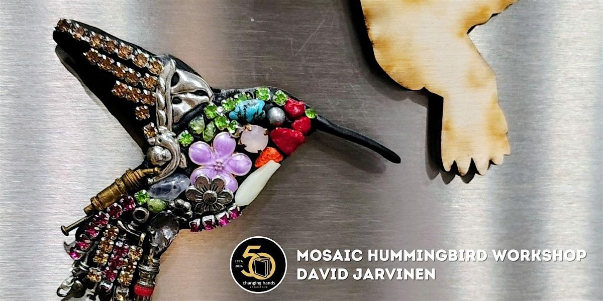 Make two mini mosaic hummingbirds with David Jarvinen, mixed media artist. Learn to nip and fit tiles together to bring your hummingbird to life.