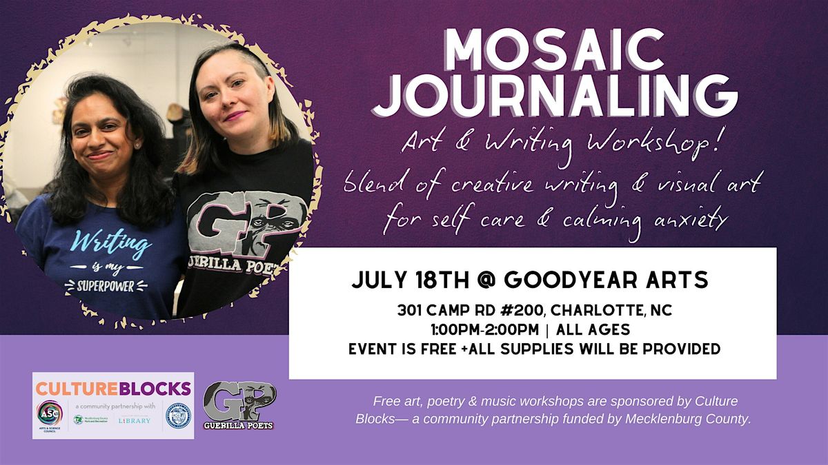 Free art, poetry & music workshops are sponsored by Culture Blocks— a community partnership funded by Mecklenburg County.