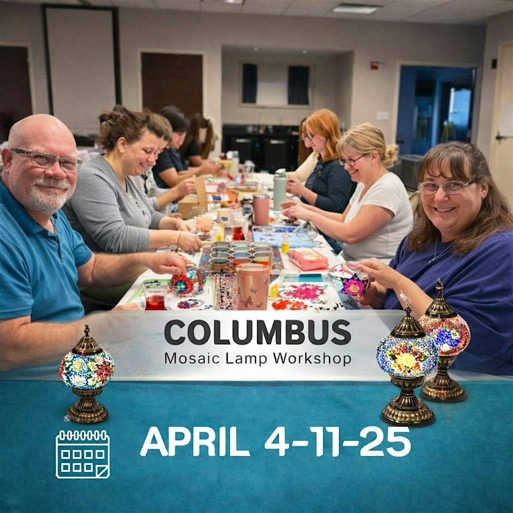 Get ready to unleash your creativity and make stunning mosaic lamps at the Columbus workshop - it's time to light up your artistic side!
