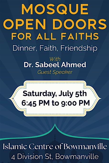 Welcome to the Mosque Open Doors event! Join us at Masjid al Jannah, Scarbrough, ON for an evening of learning, exploration, and community. Whether you're a curious neighbor, a student researching religions, or simply interested in Islamic culture, this event is perfect for you. Come inside our beautiful mosque, ask questions, and meet our friendly members. Discover the rich history and traditions of Islam through guided tours, informative displays, and engaging discussions. Don't miss this opportunity to connect with your Muslim neighbors and learn more about our faith. We look forward to welcoming you!