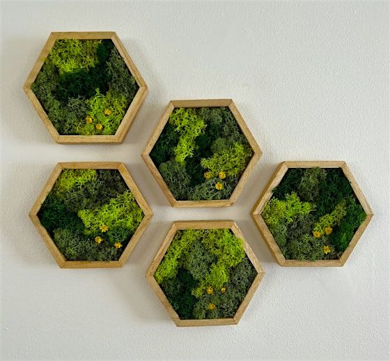 Using a combo of 5 hexagon frames, you’ll design a unique piece of living-inspired art with preserved moss, dried florals, cones, and natural accents. This no-maintenance project is the perfect way to add greenery and texture to your walls—and makes a wonderful handmade gift, too.