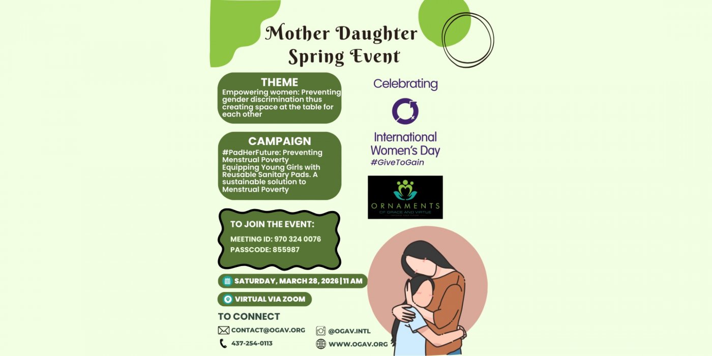 Ornaments of Grace and Virtue International Organization (OGAV) is excited to announce our annual Mother-Daughter Event, taking place on March 28th, 2026, in celebration of International Women’s Day.