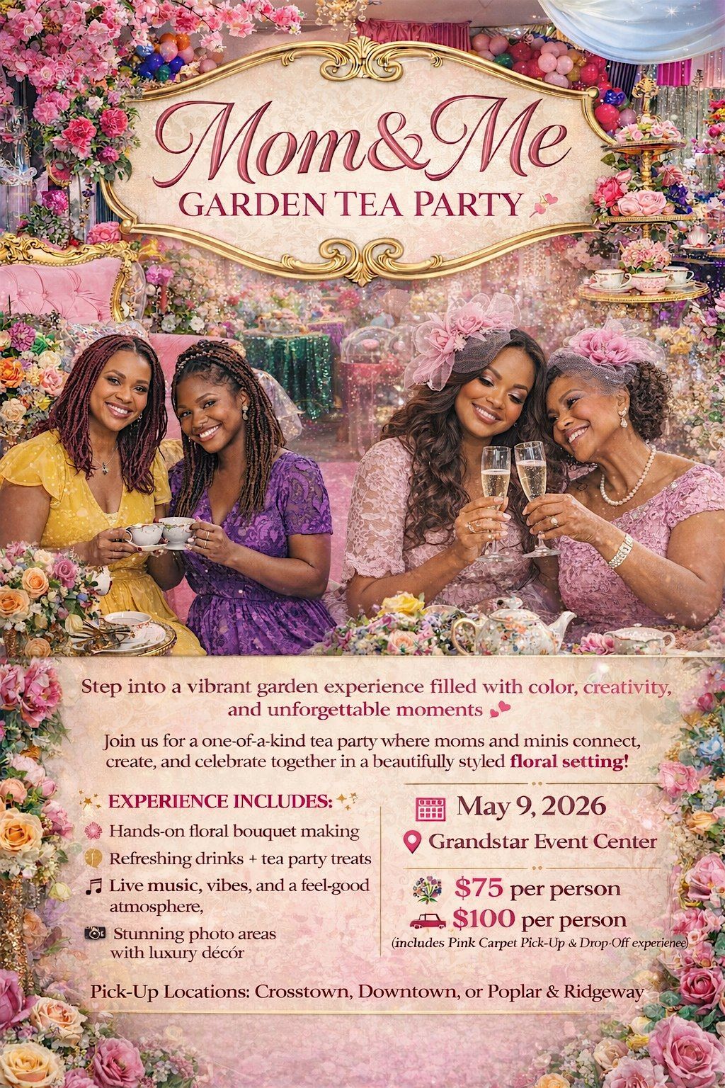 Grab your mom or daughter for a delightful in-person experience surrounded by nature! Sip on refreshing garden tea while getting creative with flowers. You'll craft your own beautiful floral bouquet, making memories and lovely keepsakes together. It’s a perfect way to bond, relax, and enjoy the beauty of blooms side by side.