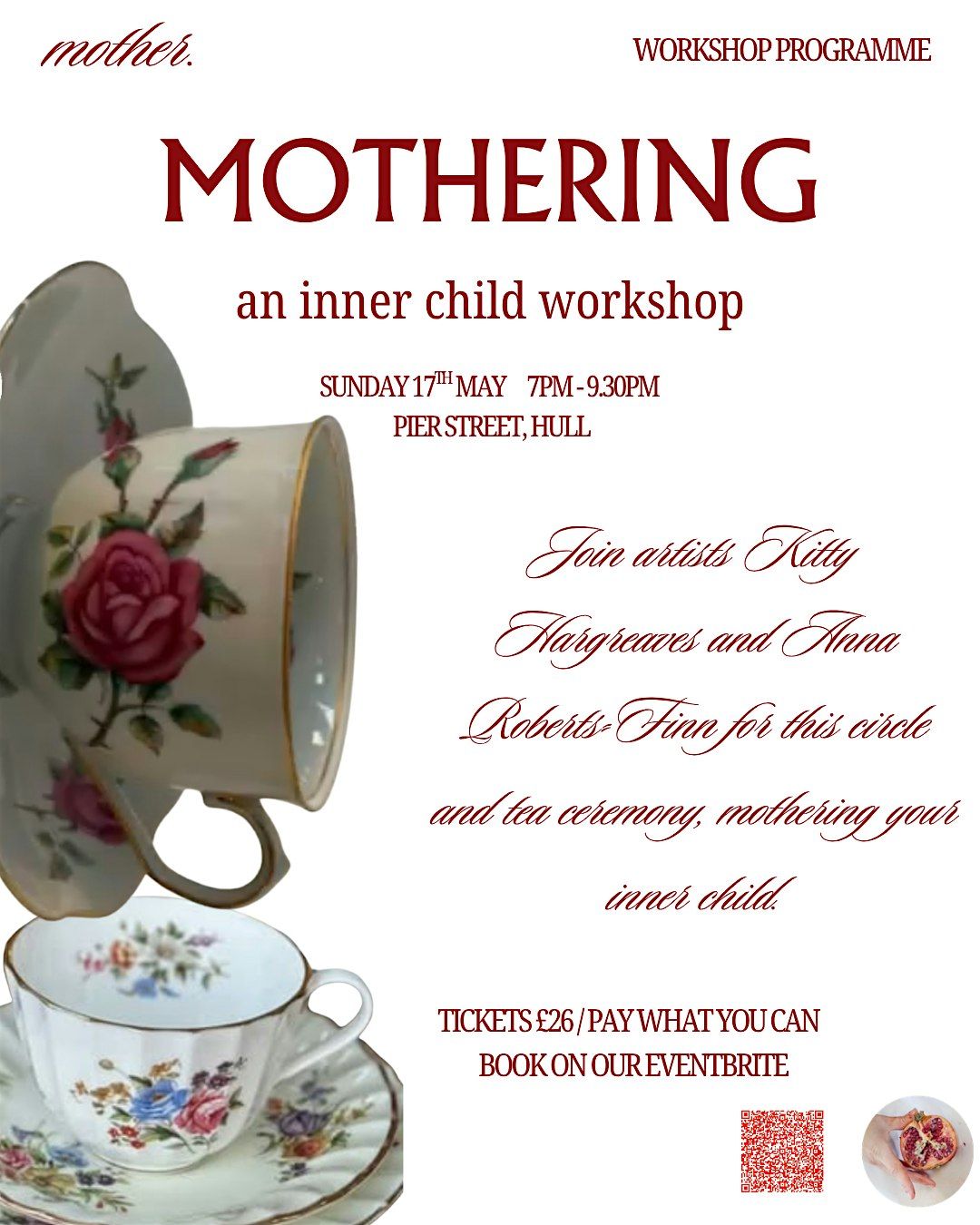 Join artists Kitty Hargreaves and Anna Roberts-Finn for this circle and tea ceremony, mothering your inner child.