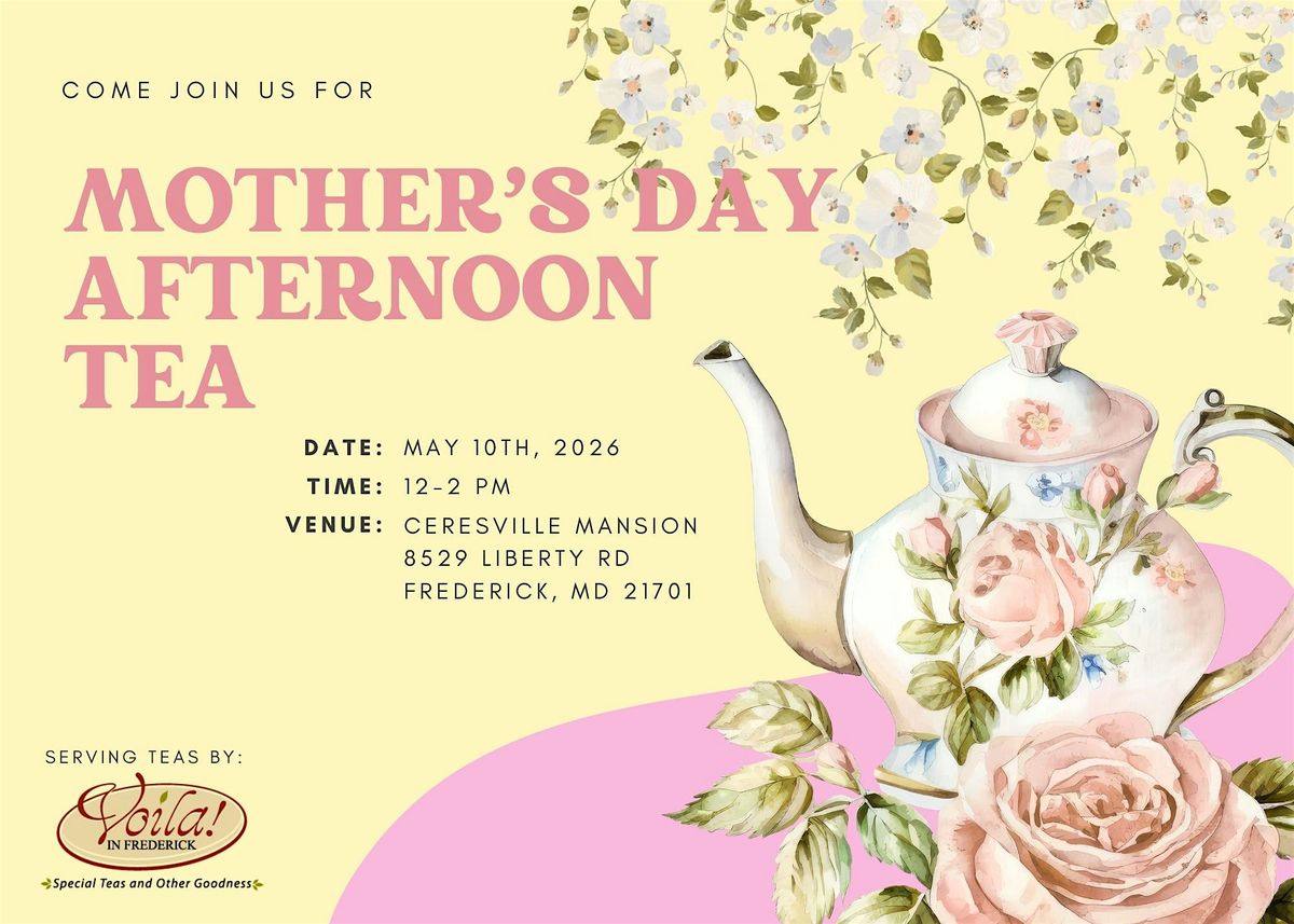 Welcome to the Mother's Day Afternoon Tea event at Ceresville Mansion! Treat your mom to a delightful afternoon filled with delicious teas, scrumptious pastries, and quality time together. Join us for a charming experience in a beautiful setting, surrounded by loved ones. Show your appreciation to the special women in your life with this elegant event. Reserve your spot now for a memorable Mother's Day celebration!