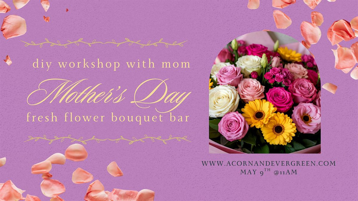 Title: Mother's Day Bloom BarDate: Saturday, May 9th, 2026Time: 11:00 AM – 12:30 PMTickets: $45 per personLocation: Acorn & Evergreen Floral Studio, 1109 S. Water Street, Kent, OH