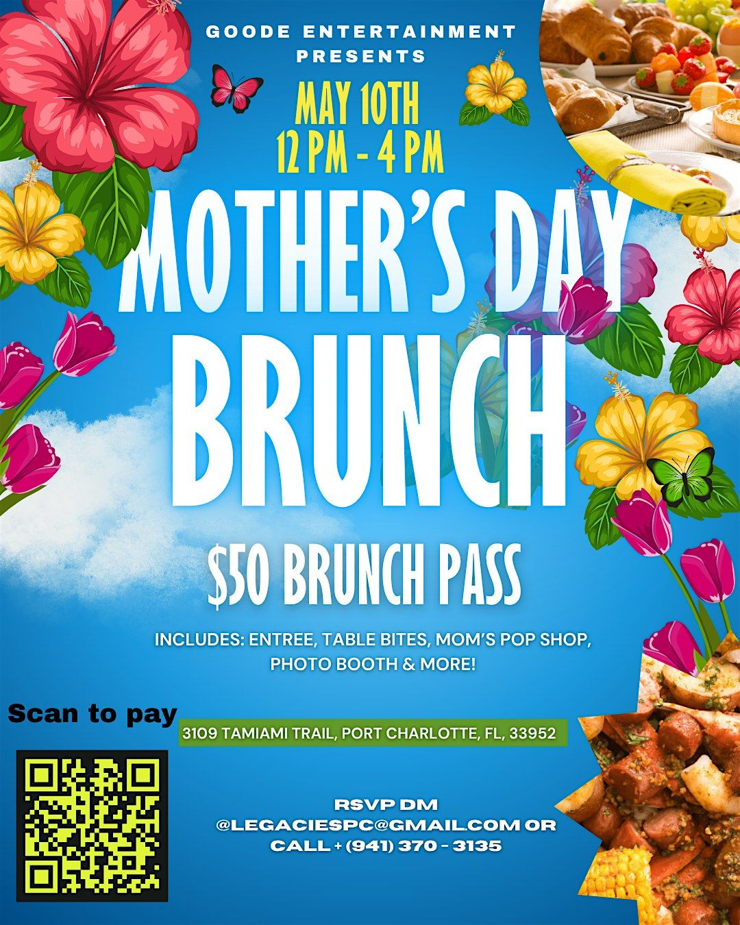 Mother’s Day Brunch May 10, 12 - 4PM! Bites, Mom’s Pop Shop, photo booth & vibes. $50 pass. Port Charlotte. Limited seats!