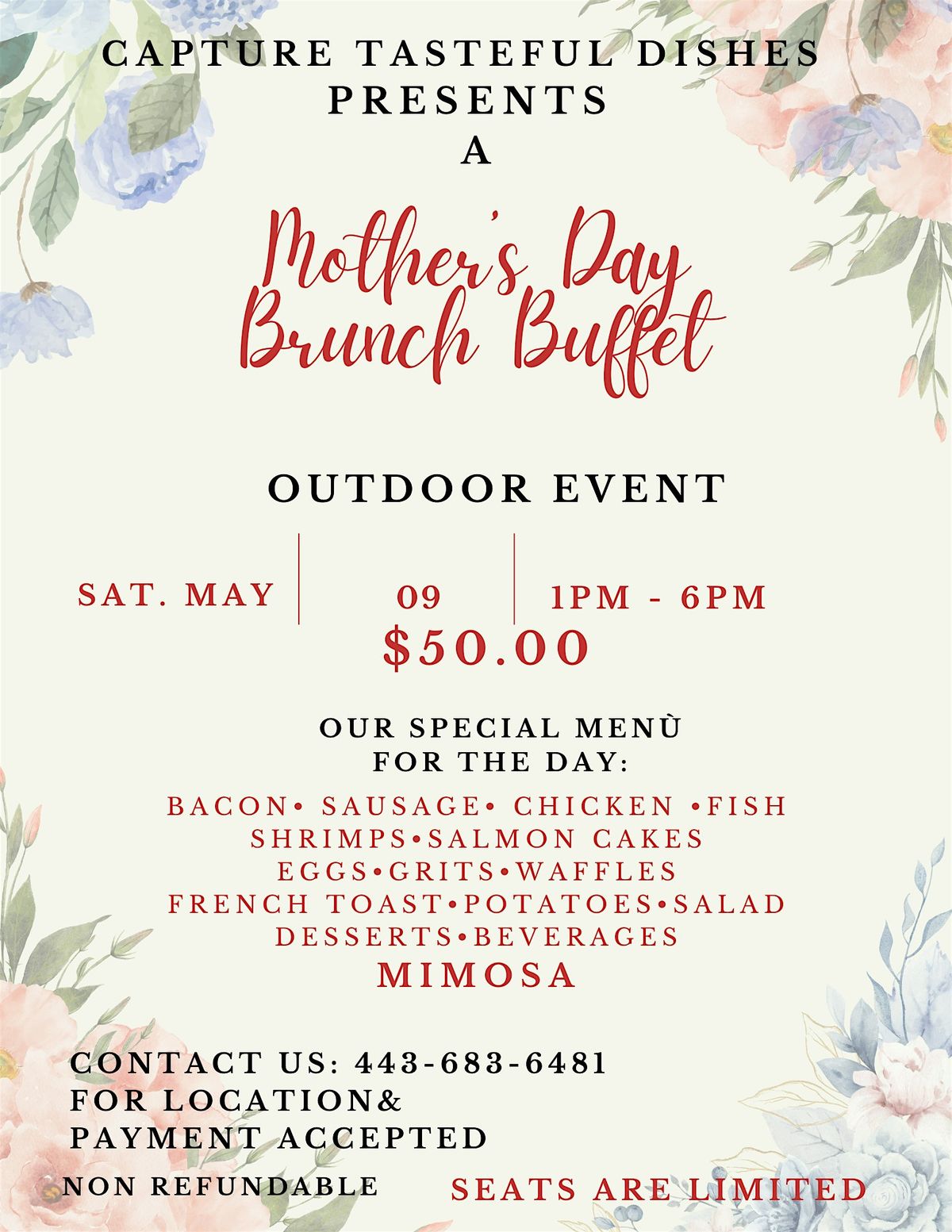 Join us for a intimate outdoor brunch event. A fun environment for mothers with tasty dishes and desserts providing unforgettable memories.About this Event