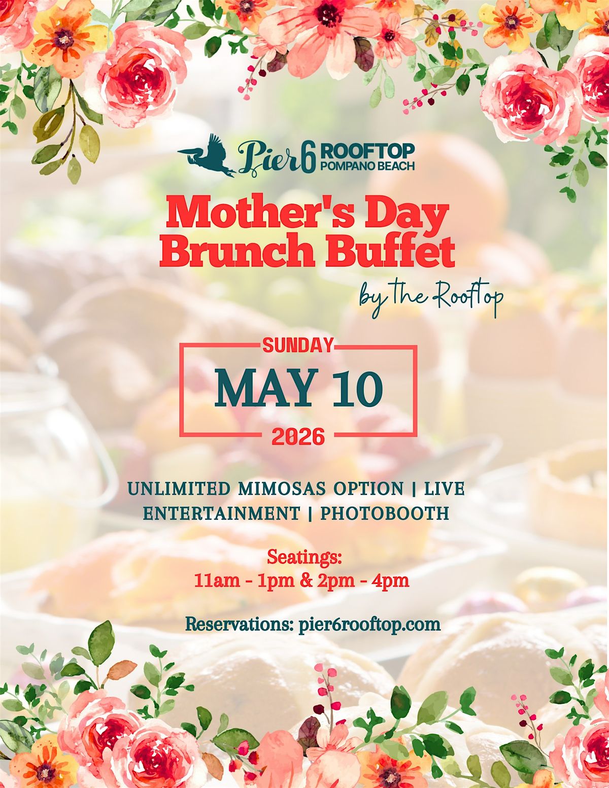 Join us for a memorable Mother's Day brunch at our enchanting Pier 6 Rooftop! 🌸🌿✨ Treat the special women in your life to a delightful culinary experience amidst breathtaking views. From delectable dishes to heartwarming moments, let's celebrate motherhood in style. Mark your calendars for May 10th , and make this day one to cherish forever. Limited spots available, so RSVP soon!