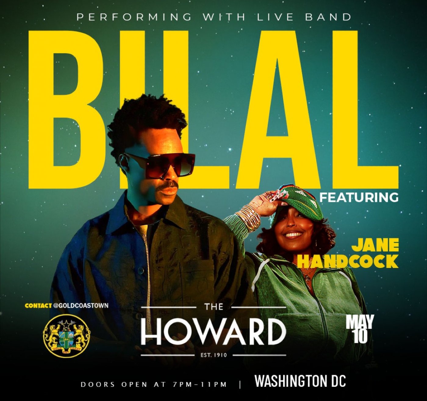 Neo Soul artist Bilal celebrates "soul sistas" during this Mothers day at the Historical Howard Theatre. He will be Joined by Jane Handcock. Concert date is May 10th 2025