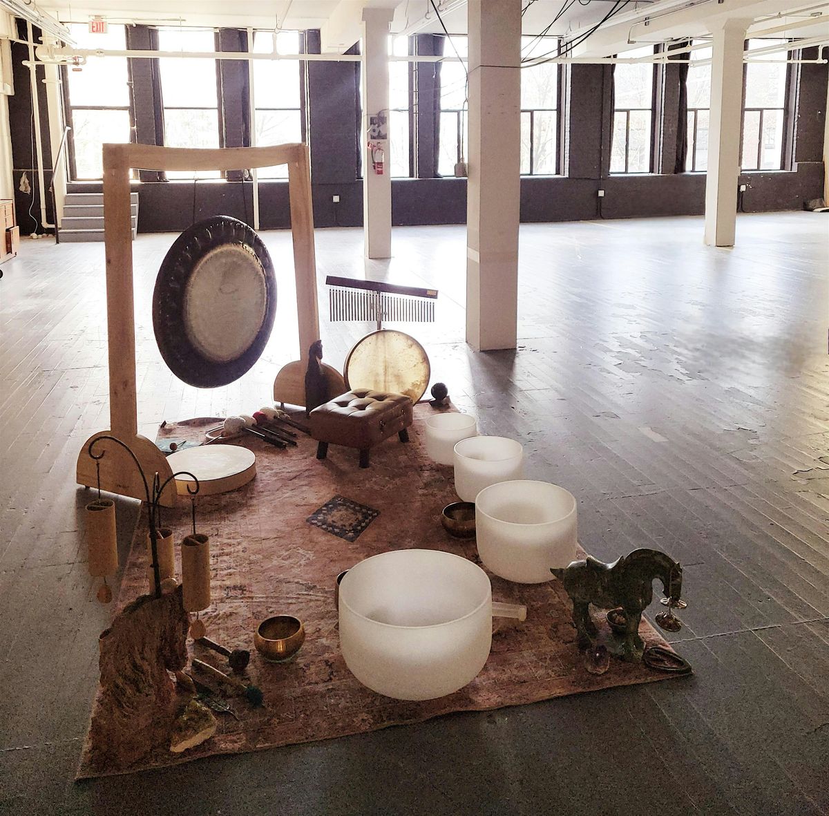 Held in a second-floor warehouse space defined by a wall of natural light, this space offers an elevated retreat from the busy streets below. Occasionally we hear the ambient hum of the city, and use those moments in collaboration with our intended sounds to further anchor us to the present.