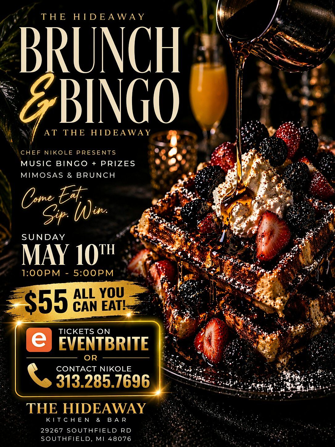Join us at The Hideaway for a Mother’s Day Brunch & Bingo Experience all you can eat