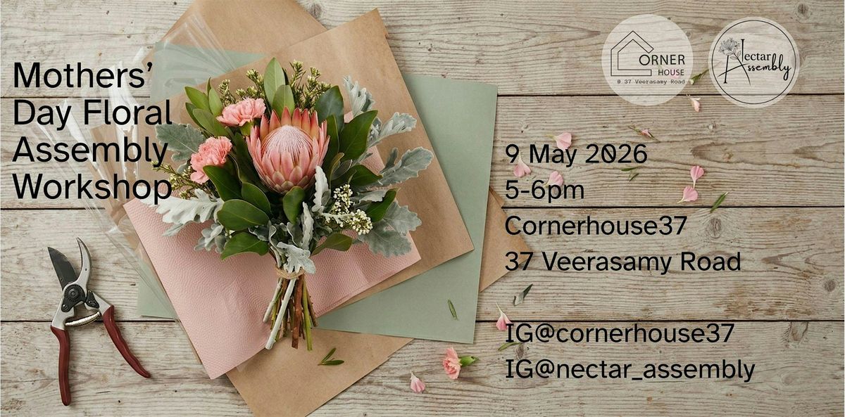 Bring your mum to our floral assembly workshop for a fun bonding time over flowers! No experience needed, just good vibes and a love for flowers. All materials and tools provided. Event is organised by IG@nectar_assembly. We'll meet at Cornerhouse (37 Veerasamy Rd), 5 minutes walk from Jalan Besar MRT station. Bring your mum out to the many restaurants in Jalan Besar for dinner afterwards! Flowers in the poster are indicative of size not the actual flower types, the actual flowers may differ on the day, but they are guaranteed to be gorgeous, elegantly picked by our florists:)