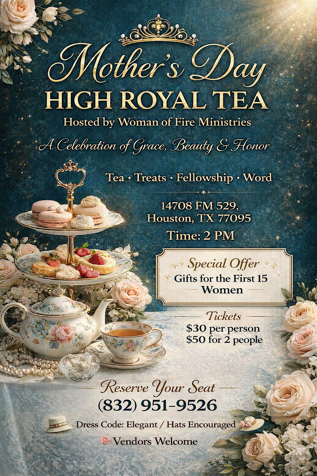 🌸👑 Join us for a Mother’s Day High Royal Tea hosted by Woman of Fire Ministries—a special gathering to honor and celebrate women in a spirit of elegance, love, and fellowship.