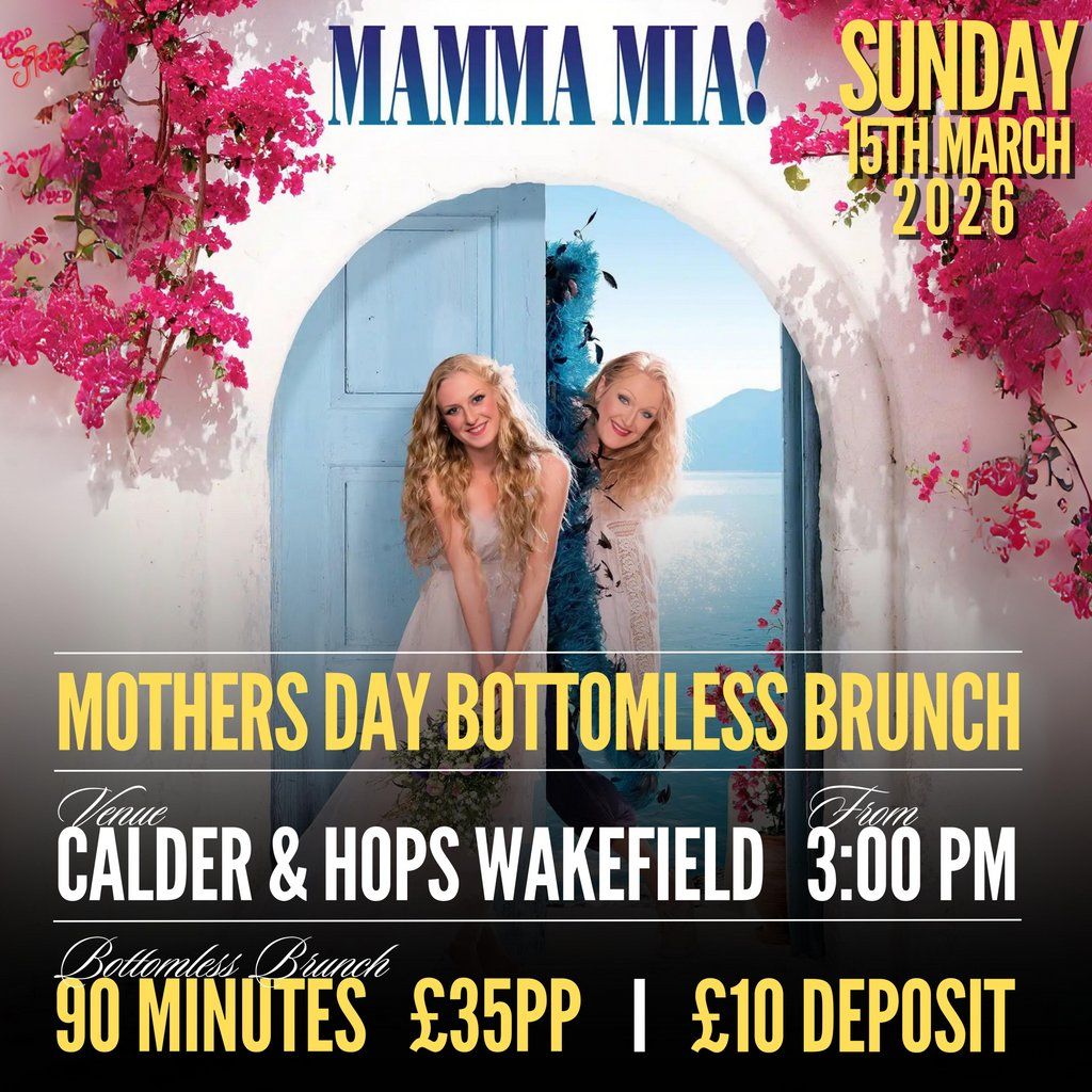 Back by Popular Demand, Mamma Mia Bottomless Brunch, 90 Mins, 3pm sit down 3.30pm start, £35 per-person, includes small main meal and unlimited drinks