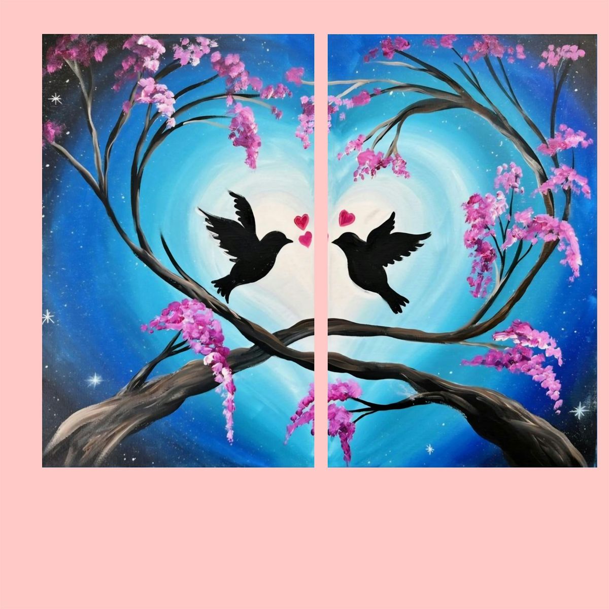 You will be painting 2 -- 12" x 16" canvases side-by-side in a guided session. All supplies included, just bring a smile :-)