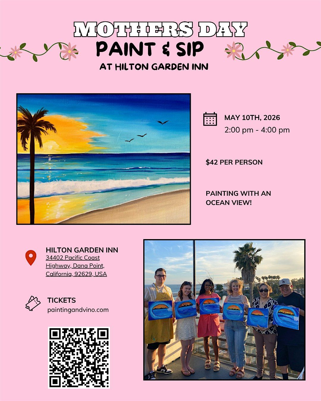 Join us this Mothers Day at our paint and sip hosted at Hilton Garden Inn Dana Point– a
