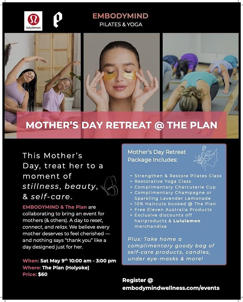On Saturday, May 9th, EmbodyMind and The Plan in Holyoke are hosting a Mother's Day Retreat from 10am to 3pm. No "hustle," no mirrors, and definitely no sweat required.