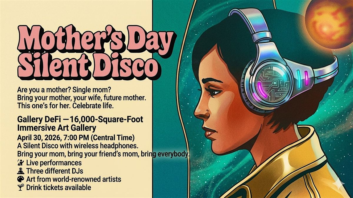 Get ready for a fun and unique way to celebrate Mother's Day! Join us at Gallery DeFi on April 30, 2026 at 7:00 PM (Central Time) for a silent disco where you can dance the night away with wireless headphones. Bring your mom or just come to enjoy great vibes, music, and good company in a chill setting. Don't miss out on this cool and memorable night!