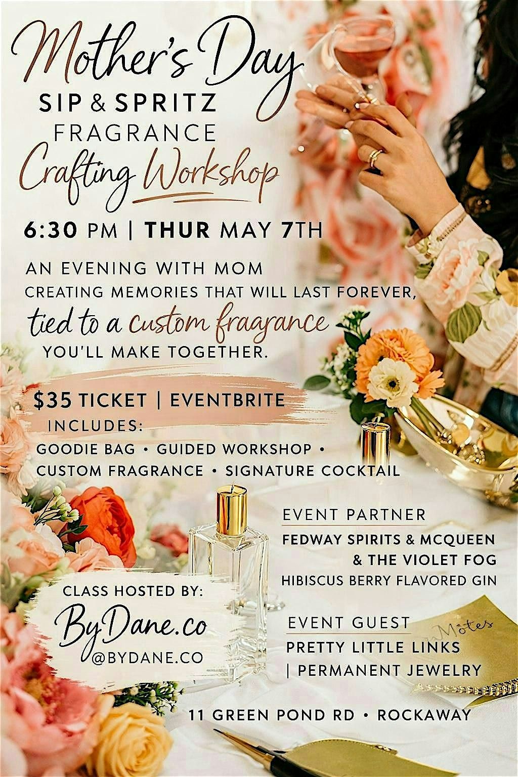 Come sip, spritz, and celebrate the moms in your life with an evening of fragrance, cocktails, and unforgettable memories.