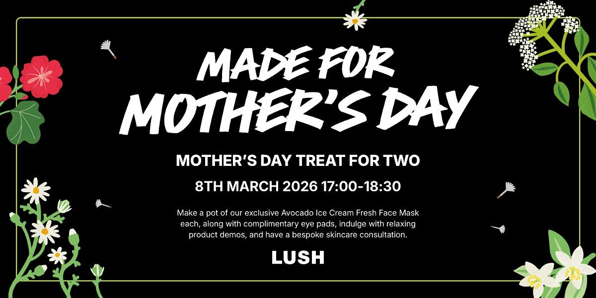 Celebrate Mother's Day with a special outing just for you and Mum, Nan, Aunt, or any special motherly figure! We'll start by making our exclusive Avocado Ice Cream Fresh Face Mask, a pot each! You'll also receive some cooling eye pads in your bags.