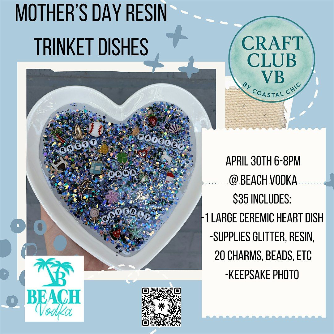 Celebrate Mother’s Day with a creative night out at Craft Club VB! 💙 Join us for a hands-on workshop where you’ll design your own stunning resin trinket dish—perfect for holding jewelry, keys, or little keepsakes.
