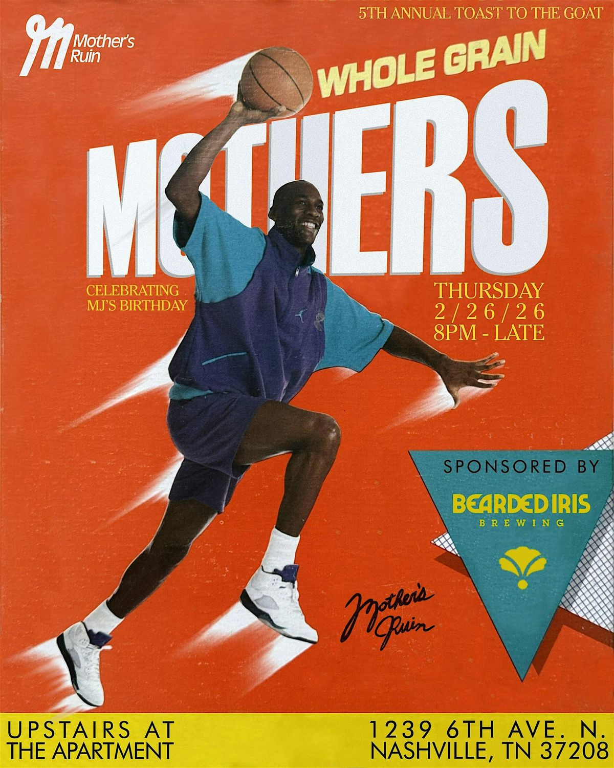 Everybody get up, it's time to jam now as Mother's Ruin Presents our 5th Annual Toast To The G.O.A.T. event celebrating Michael Jordan's birthday! On Thursday, February 26th throw on that MJ throwback jersey and shine up your J's for a night you won't want to miss.