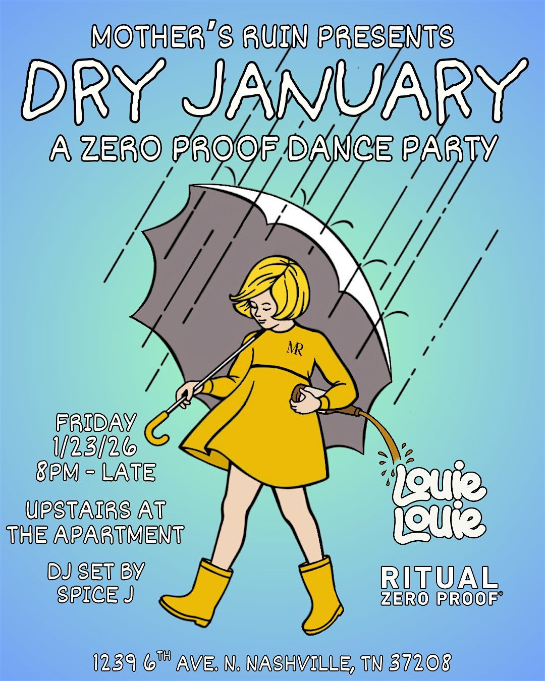 Join us on Friday, January 23rd as Mother's Ruin Presents Dry January: A Zero Proof Dance Party!
