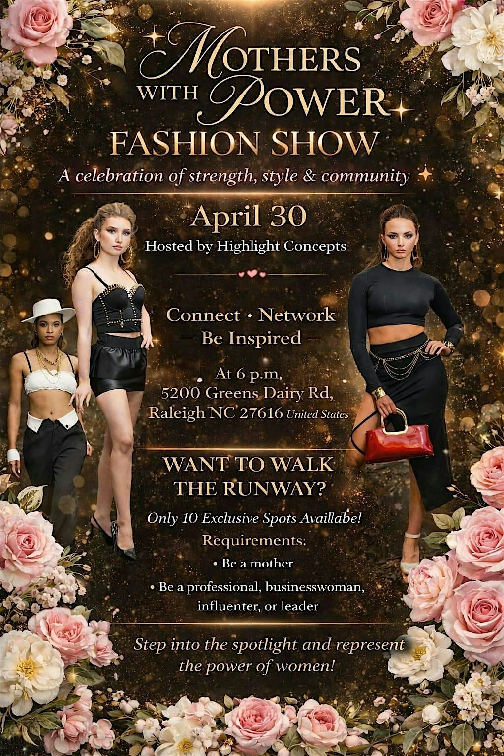 Join us on April 30 for an unforgettable experience at Mothers with Power, hosted by Highlight Concepts. Witness the latest collections from our talented designers, proudly showcased by powerful mothers from across the Triangle and beyond!
