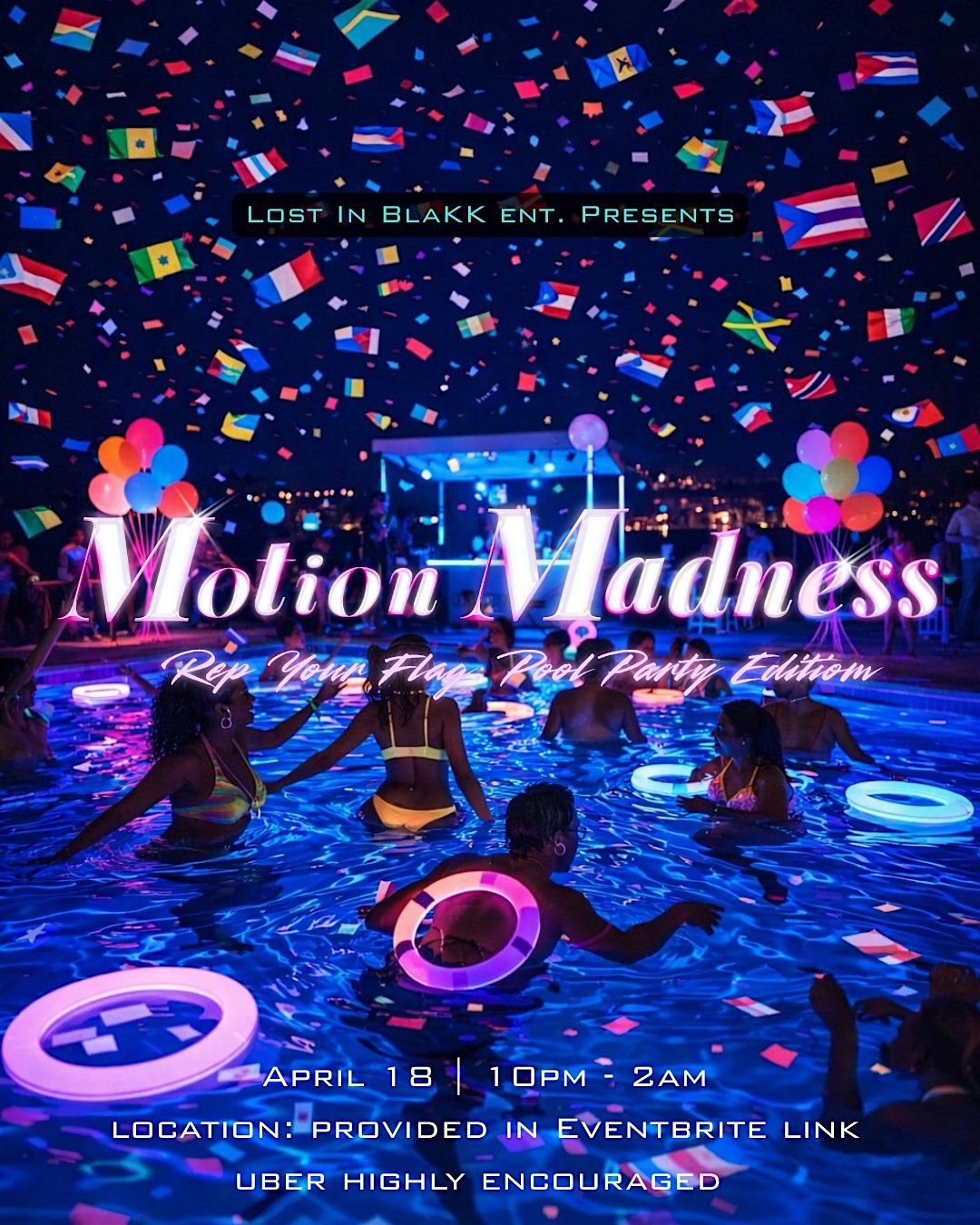 Lost in Blakk Ent. presents the ultimate late-night pool experience where culture, energy, and pure vibes collide. Welcome to Motion Madness, the Rep Your Flag Edition.