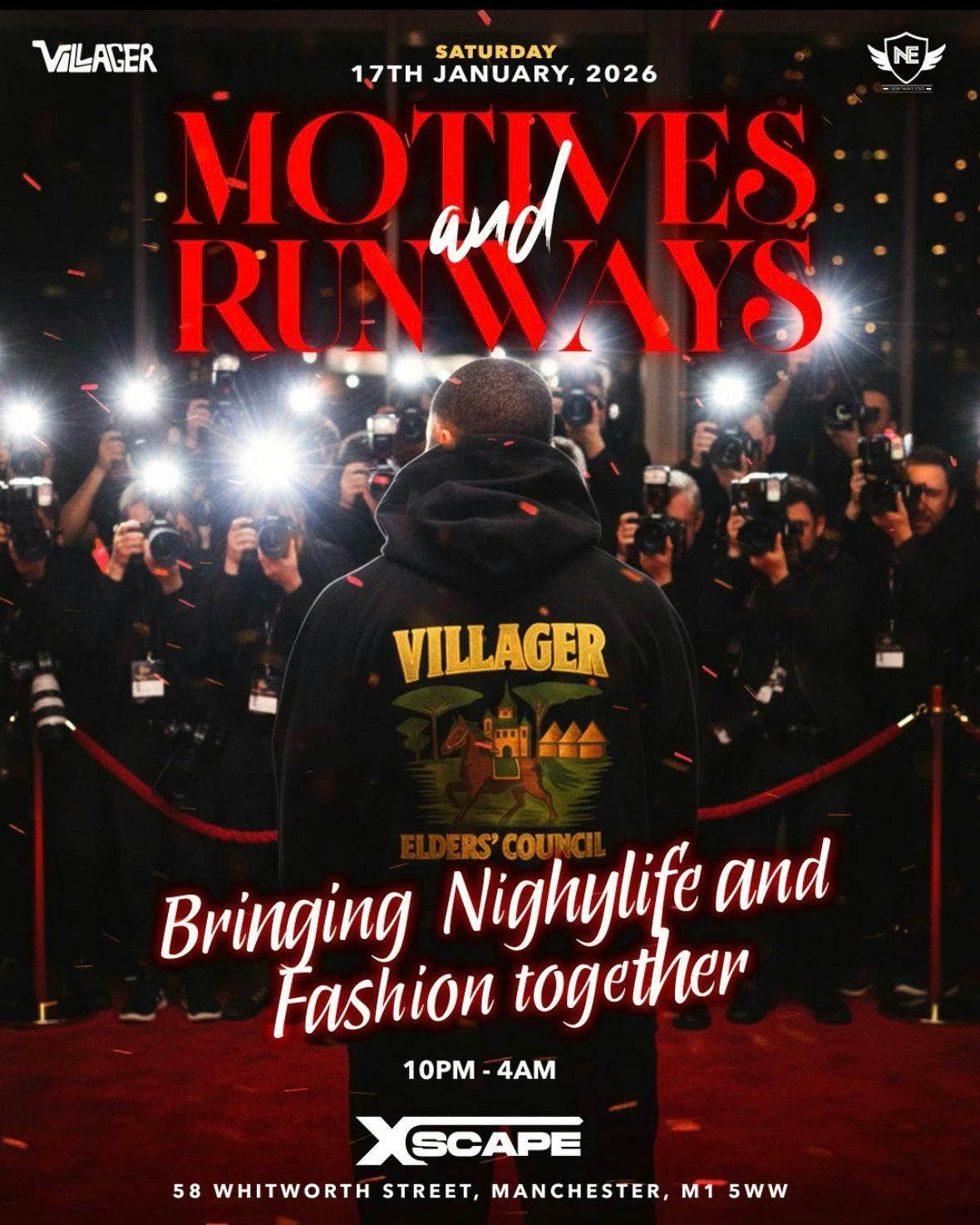 Welcome to MOTIVES & RUNWAYS — where style, sound, and late-night energy collide. Join us on Saturday 17th January 2026, from 10PM – 4AM, as Xscape Manchester hosts a night inspired by confidence, movement, and pure nightlife vibes.Expect a high-energy blend of Afrobeats, HipHop, Amapiano, and Dancehall, a fashionable crowd, and an atmosphere where everyone comes with purpose and presence. Whether you’re stepping out to be seen, to dance, or to enjoy premium vibes, this night is all about motives and moments.
