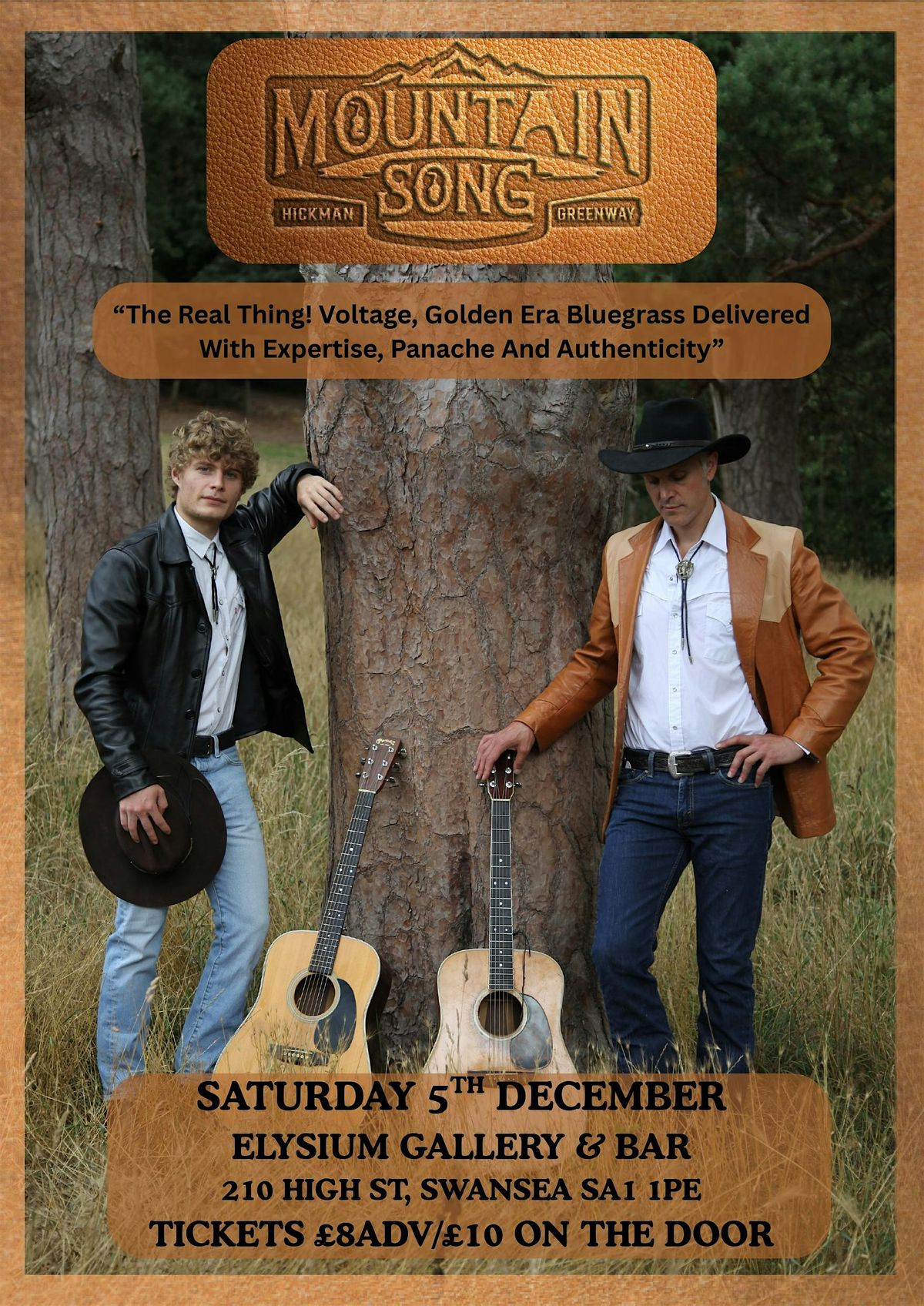 Mountain Song is a hard-driving bluegrass duo bringing the sound of the genre’s golden era back to the stage. Will Greenway and James Hickman deliver tight harmony singing and masterful guitar work, rooted firmly in early Appalachian tradition. Historically accurate and sharply played, this is bluegrass with grit, wit, and real bite.