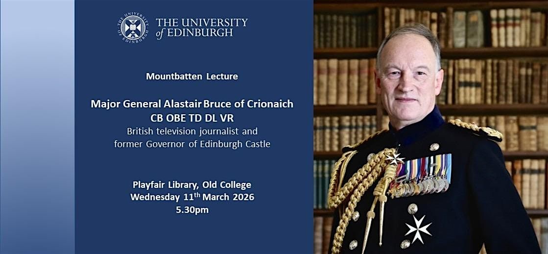 Major General Alastair Bruce of Crionaich CB OBE TD DL VR, British television journalist and former Governor of Edinburgh Castle will give the Mountbatten Lecture "Inspiration and its Effect: a soldier motivated into film, broadcasting and telling stories."
