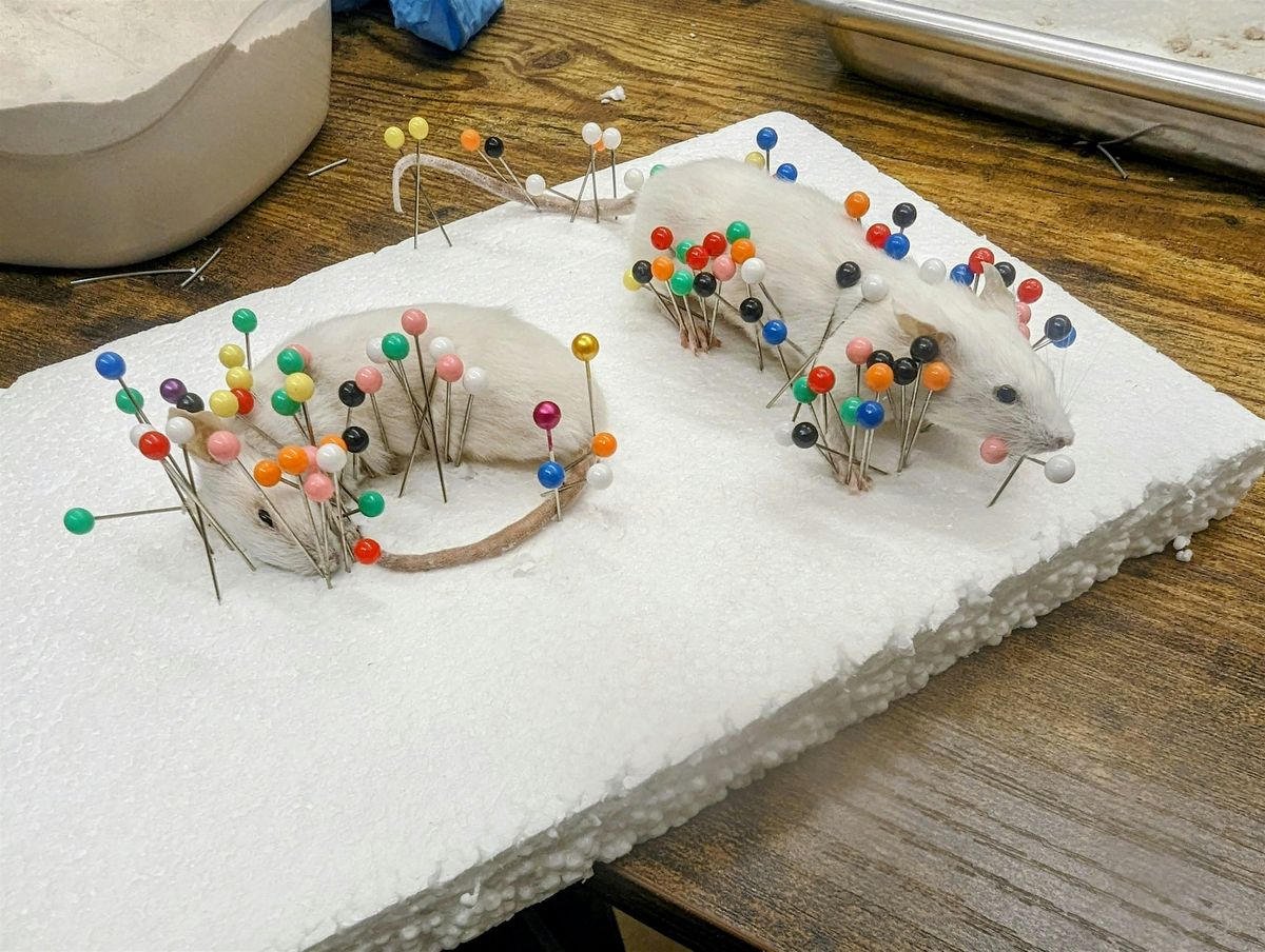 Join us for a hands-on mouse taxidermy workshop designed for adults and mature teens interested in learning small mammal specimen preservation. Working step by step in a supportive studio environment, students will learn the fundamentals of taxidermy by mounting a mouse from start to finish, learning how to create a naturalistic result. Safety, cleanliness, and respect for the animals will be thoroughly addressed throughout the process.
