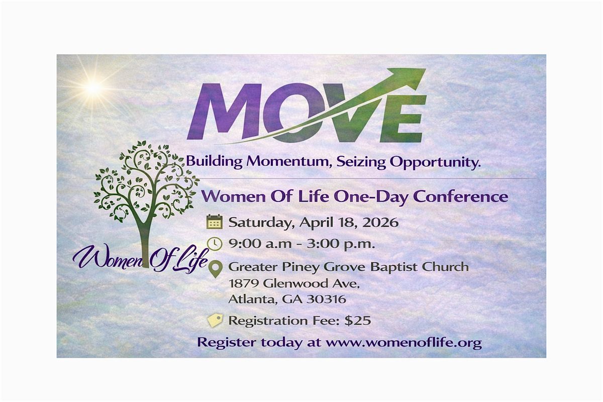 Join us for the Women of Life MOVE One-Day Conference, a powerful and purpose-filled experience designed to help you build momentum and seize the opportunity God has placed before you.