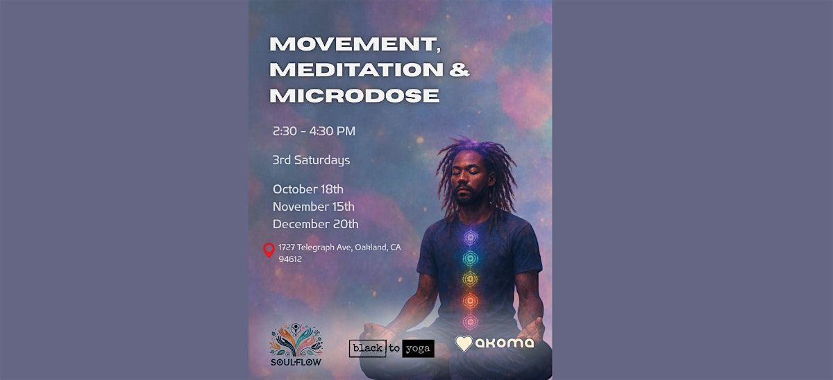 Embark on a journey of self-discovery with us! This unique class will incorporate community building and meditation, gentle yoga and breath work and a sound bath. This is a collaboration between Akoma Church, Black to Yoga & SoulFlow Oakland. All are welcome!