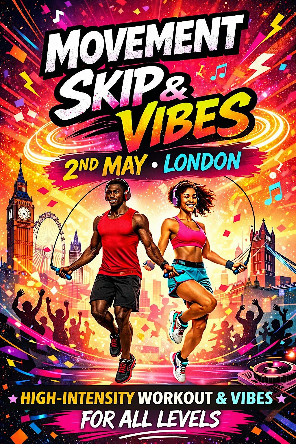 Welcome to Movement: Skip & Vibes – a high-energy fitness session where music, movement, and skipping come together to create a workout that feels more like a vibe than a chore.