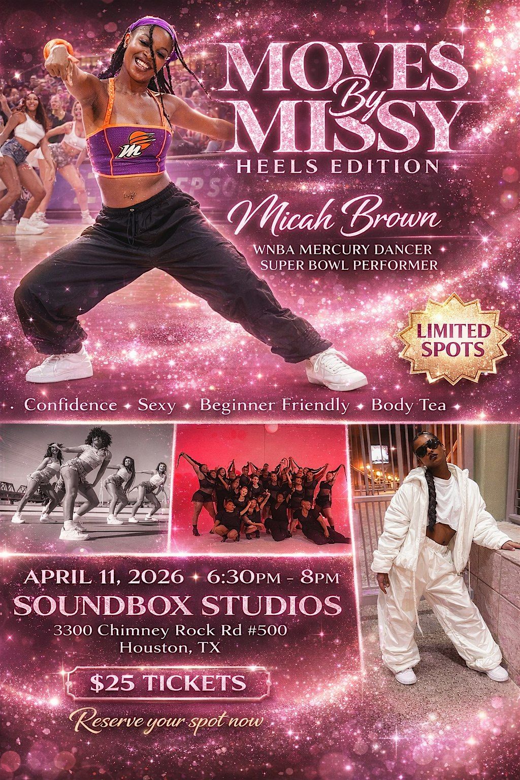 Join Micah Brown β WNBA Mercury dancer & Super Bowl Halftime performer with Rihanna β for a heels class designed for all levels, especially beginners.