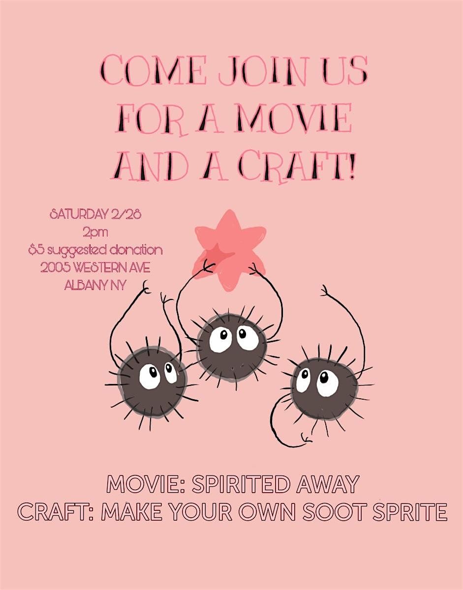 We will having a free movie showing of Spirited Away and while we're watching the movie, we will be crafting our own soot sprite. 🎞️