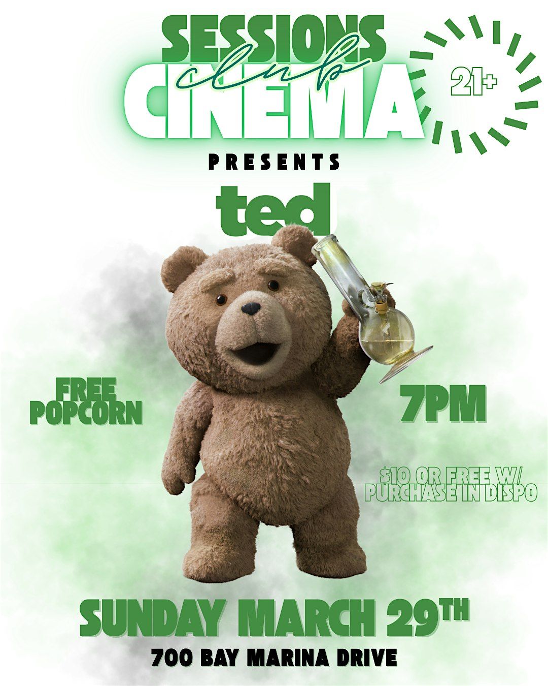 Join us at Sessions by the Bay for our weekly Stoner Movie Night, featuring the cult-classic comedy TED on the big screen!