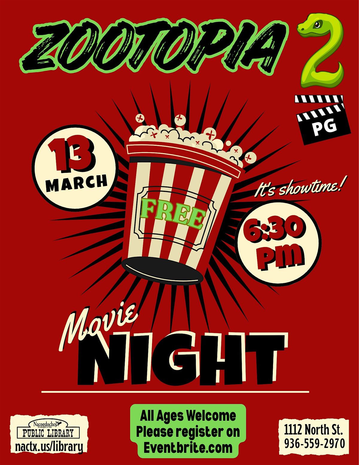 Join us for a movie night at the library! Popcorn and drinks are on us. This movie is rated PG. All Ages!