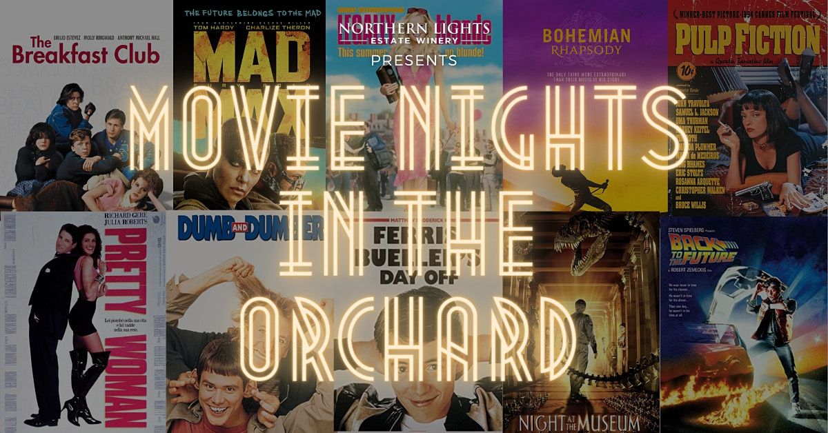 As Movie Nights are fully outdoors, please remember to dress warmly and bring any blankets or lawn chairs to sit on. You are able to come set up an hour before the movie is set to begin (make sure to check your movie start time on your ticket!). We will also have a concession available to serve up popcorn, candy, water, pop, beer, and of course, Northern Lights wines. Cash, Debit, and Credit are available at the concession