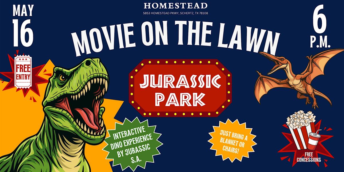 Come face-to-face with dinosaurs during an interactive experience with Jurassic S.A. Dino Experience, enjoy complimentary concessions, and stay for a private screening of Jurassic Park under the stars.
