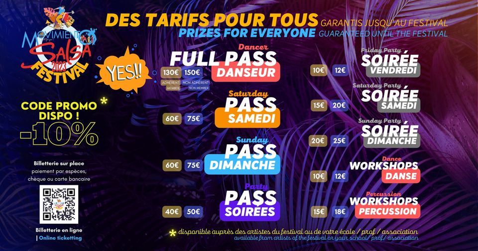 Pour bénéficier du tarif, utilisez le code : MOVIMIENTO SALSA